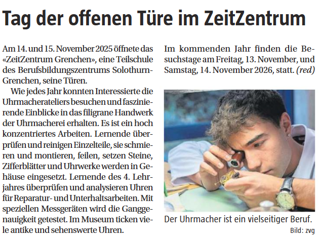 Jedes Jahr öffnet das ZeitZentrum Grenchen seine Türen und lädt Interessierte dazu ein, einen Blick in die faszinierende Welt der Uhrmacherkunst zu werfen.